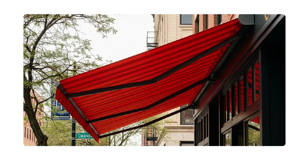 Our residential and commercial retractable awnings are not only good in appearance, but they are built to perform. We install the best-grade Sunbrella canvas and Patio 500 vinyl, which is proven to be weatherproof and UV resistant, as well as to maintain color brightness. They are designed to manage unpredictable weather in Chicago, whether it is bright sun or windy weather, and leave your business covered and fashionable. Our materials are low-maintenance and tailored to offer both function and form, making them ideal for storefronts, patios, and outdoor commercial spaces.